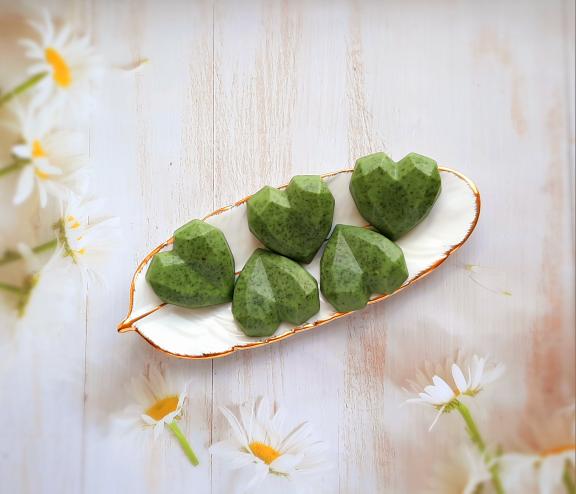 • Žalios širdelės kvepia paslaptingais jazminais. Praturtintos malta žaliaja arbata ir vynuogių sėklų aliejumi. Tai gaivus natūralumo prisilietimas, įkvėptas gamtos grožio. Puikiai tiks tiems, kurie vertina harmoniją ir natūralią priežiūrą.