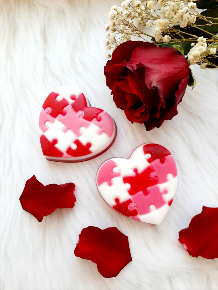 Kaip dėlionė, kur kiekviena dalis turi savo vietą, taip ir meilė – gimsta iš rūpesčio, švelnumo ir kasdienių akimirkų. Širdelės formos muilas džiugina akį raudonomis, rožinėmis ir baltomis spalvomis, o prausiantis apgaubia saldžiu, viliojančiu aviečių aromatu, primenančiu vasarą ir šiltus jausmus.
