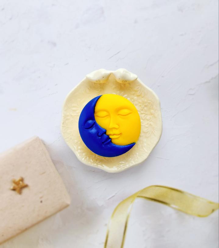 Jo dizainas atspindi amžiną meilę, kur saulė ir mėnulis susitinka švelniame bučinyje